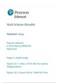 Pearson Edexcel Level 3 GCE History Advanced PAPER 2: 9hi0-2f Depth study Option 2F.1: India, c1914–48: the road to independence Option 2F.2: South Africa, 1948–94: from apartheid state to ‘rainbow nation’ question paper june 2024