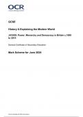 OCR GCSE History A Explaining the Modern World J410/09: Power: Monarchy and Democracy in Britain c.1000 to 2014 General Certificate of Secondary Education Mark Scheme for June 2024