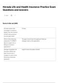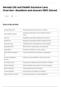 Nevada Life and Health Insurance Laws Overview- Questions and Answers 100% Solved