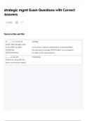 Strategic MGMT Exam Questions with Correct Answers