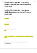 Pool and Spa Operator Exam Study Guide Questions and Correct Answers /Pool and Spa Operator Exam Study Guide Questions and Correct Answers /Pool and Spa Operator Exam Study Guide Questions and Correct Answers