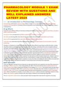 - PHARMACOLOGY MODULE 1 EXAM REVIEW WITH QUESTIONS AND WELL EXPLAINED ANSWERS LATEST 2024 • Exam (elaborations)