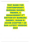 TEST BANK FOR CONTEMPORARY NURSING ISSUES, TRENDS, & MANAGEMENT 9TH EDITION BY BARBARA CHERRY, SUSAN R. JACOB CHAPTER 1-28 Q&A LATEST VERSION 2024