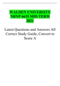 WALDEN UNIVERSITY NRNP 6635 MID TERM 2021 Latest Questions and Answers All Correct Study Guide