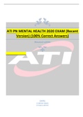 ATI PN MENTAL HEALTH 2020 EXAM (Recent Version) (100% Correct Answers)