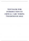 TEST BANK FOR INTRODUCTION TO CRITICAL CARE NURSING 7TH EDITION BY SOLE