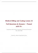 Medical Billing and Coding Lesson 15 Full Questions & Answers – Passed with A+