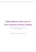 Medical Billing & Coding Lesson 22 Correct Questions & Answers (Verified)