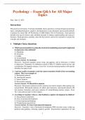 Psychology– Exam Q&A for All Major