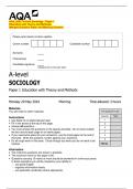 AQA_2024: A-level Sociology - Paper 1 Education with Theory and Methods. (Merged Question Paper and Marking Scheme)
