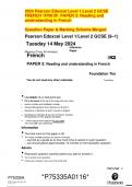 2024 Pearson Edexcel Level 1/Level 2 GCSE FRENCH 1FR0/1F. PAPER 1: Listening and understanding in French Question Paper & Marking Scheme Merged Pearson Edexcel Level 1/Level 2 GCSE (9–1) Tuesday 14 May 2024 Morning (Time: 30 minutes and Paper