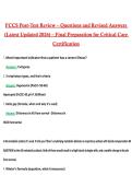 Verified answe... i x Exam (elaborations) • 16 pages • by LECTGRADER • uploaded 2026 Quick View i x FCCS • FCCS FCCS Post-Test Review Questions and Revised Answers (Latest Updated 2026) Final Preparation for Critical Care Certification | Grade A+ Guarantee (0) $13.99 0x sold FCCS Post-Test Review Questions and Revised Answers (Latest Updated 2026) Final Preparation for Critical Care Certification | Grade A+ Guarantee