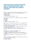 - PRACTICE EXAM, NATIONAL PESTICIDE APPLICATOR CERTIFICATION CORE MANUAL QUESTIONS AND CORRECT ANSWERS • Exam (elaborations)
