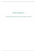 This IOP2601 summary pack offers concise, exam-ready notes for the course “Introduction to Psychological Assessment” at UNISA. It includes verified questions and answers graded A+, covering core topics such as test reliability, validity, standardization, norming, and ethical assessment practices. Learners will gain a clear understanding of psychometric principles, cultural fairness, and the role of psychological testing in industrial and clinical settings. Ideal for psychology students prepa...