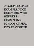 TEXAS PRINCIPLES 1 EXAM PRACTICE QUESTIONS WITH ANSWERS - CHAMPIONS SCHOOL OF REAL ESTATE.VERIFIED