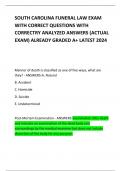 SOUTH CAROLINA FUNERAL LAW EXAM WITH CORRECT QUESTIONS WITH CORRECTRY ANALYZED ANSWERS (ACTUAL EXAM) ALREADY GRADED A+ LATEST 2024