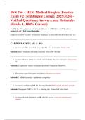 This document contains the BSN 266 HESI Medical-Surgical Practice Exam V2 used at Nightingale College for the 2025/2026 academic year, including verified questions, accurate answers, and clear rationales. It reflects the structure and difficulty of the Med-Surg exam, covering essential disease processes, diagnostics, interventions, and priority patient care concepts. The material provides comprehensive, exam-oriented guidance to support mastery of key medical-surgical topics.