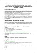 This document is the latest 2025/2026 study guide for the Texas Mold Remediation Contractor State Exam, featuring verified questions and 100% correct answers. It covers licensing requirements, remediation protocols, safety regulations, and compliance standards necessary to pass the state exam with top marks.
