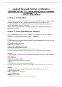 This document features a complete set of verified questions and correct answers for the Medical-Surgical Nursing Certification Exam (MEDSURG-BC™), updated for the 2025/2026 edition. It thoroughly covers core competencies in med-surg nursing, including clinical decision-making, patient management, and evidence-based care. Ideal for nurses preparing for board certification.