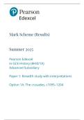 - 2025 A-LEVEL PEARSON EDEXCEL ADVANCED SUBSIDIARY PAPER 1 OPTION 1A THE CRUSADES MARK SCHEME • Exam (elaborations)