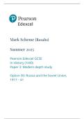 2025 GCSE PEARSON EDEXCEL HISTORY PAPER 3 OPTION 30 RUSSIA AND THE SOVIET UNION WITH MARK SCHEME