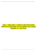 This document provides a full set of exam practice questions with verified solutions for WGU course D669: Early Literacy Methods. Updated for the 2025–2026 academic year, it covers essential topics such as phonemic awareness, phonics instruction, vocabulary development, reading fluency, and comprehension strategies. All solutions are verified and graded A+, making this a dependable and high-quality resource for exam preparation and coursework success.
