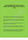 This document prepares students for the AHIP Discrimination, Fraud, Waste, and Abuse (FWA) exam for the 2026 certification year. It includes exam-style questions with correct, graded answers focused on compliance standards, prohibited practices, reporting procedures, and beneficiary protections.