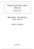 Test Bank For Business Statistics 3rd Edition By Robert A. Donnelly |All Chapters, 100% original verified, A+ Grade.
