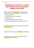 - PHARMACOLOGY (HLTH 314) - EXAM 1 2025 UPDATED ACTUAL EXAM WITH CORRECT SOLUTIONS. • Exam (elaborations)