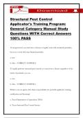 and Answers 100% PASS i x Exam (elaborations) • 47 pages • by SophiaBennett • uploaded 2026 Quick View i x Texas pesticide applicator • Texas pesticide applicator Structural Pest Control Applicator's Training Program: General Category Manual Study Questions WITH Correct Answers 100% PASS (0) $15.99 0x sold Structural Pest Control