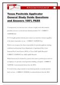 Correct Answers 100% PASS i x Exam (elaborations) • 15 pages • by SophiaBennett • uploaded 2026 Quick View i x Texas pesticide applicator • Texas pesticide applicator Texas Pesticide Applicator General Study Guide Questions and Answers 100% PASS (0) $15.99 0x sold Texas Pesticide Applicator