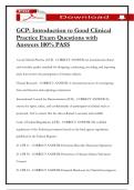 Answers Graded A+ 100% PASS i x Exam (elaborations) • 10 pages • by SophiaBennett • uploaded 2026 Quick View i x Good clinical practice • Good clinical practice GCP: Introduction to Good Clinical Practice Exam Questions with Answers 100% PASS (0) $12.99 0x sold GCP: Introduction to Good Clinical