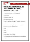 100% PASS i x Exam (elaborations) • 7 pages • by SophiaBennett • uploaded 2026 Quick View i x Texas insurance • Texas insurance TEXAS LIFE AGENT EXAM - 35 QUESTION WITH CORRECT ANSWERS 100% PASS (0) $13.99 0x sold TEXAS LIFE AGENT EXAM - 35