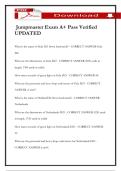 EXAM GAME-CHANGER Exam Questions and Answers Section : Study Like a Pro, Study Smart, Study with Sophia. 9098 Documents 0 Flashcards 432 Package deal Community 5 Followers 0 Following 26 Reviews received 10 5 7 1 3 4 months ago • cs251 AONN Certification Exam Questions and Answers 100% Pass 5 months ago • gurjot01 TDG Exam Questions and Answers 100% Pass 5 months ago • kobeburch Georgia Water Distribution Study Guide Exam Questions and Answers 100% Pass |Verified and Updated 5 months ago • patrickcutter FireTeam Test Exam Questions and Answers 100% Pass | Verified and Updated 5 months ago • kylecov24 JBL Chapter 11 Quiz & Test Questions and Answers | 100% Pass + Show more reviews 9538 items Everything Documents Flashcards Package deal Best sold Newest Rating Jumpmaster Exam 2025 Newest Exam Questions And Correct Answers | Passed (0) $13.99 0x sold Jumpmaster Exam 2025 Newest Exam