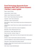 Food Technology Keywords Exam Questions With 100% Correct Answers | Verified | Latest Update