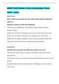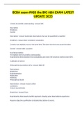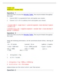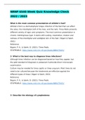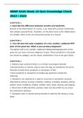 Sylviamn On this page, you find all documents, package deals, and flashcards offered by seller SylviaMn. 290 Documents 0 Flashcards 19 Package deal Community 144 Followers 0 Following 15 Reviews received 8 2 1 0 4 1 year ago • cristalcares NAPRx CNPR Exam 17 Edition Questions and Answers 2023 PHARMACEUTICAL SALES The test did not have any of the questions in this document. This was a waist of my money 2 year ago • haouakabore ATI PHARMACOLOGY PROCTORED EXAM 2023 -Correct & Verified Questions with Answers 2 year ago • markblasko1 NAPRx CNPR Exam 17 Edition Questions and Answers 2023 PHARMACEUTICAL SALES 2 year ago • lawcarmela ATI PHARMACOLOGY PROCTORED EXAM 2023 -Correct & Verified Questions with Answers 2 year ago • singhsonia5785 ATI PHARMACOLOGY PROCTORED EXAM 2023 -Correct & Verified Questions with Answers + Show more reviews 310 items Everything Documents Flashcards Package deal Best sold Newest Rating ASCP BOC Practice Exam 2023 with complete Questions and Answers (0) $11.49 0x sold CML vs. Leukemoid Reaction - ANSWER CML - decreased leukocyte alkaline phosphatase (LAP) Leukemoid Reaction - increased LAP Look-back - ANSWER The process for the identification and notification of recipients of blood components from prior donations of who now test positive for HCV, HIV-1 and/or HIV-2. External reference electrode used in ISE - ANSWER KCl The serum glucose concentration of a diabetic patient undergoing a 2-hr GTT should return to the baseline (fasting level) after _____ minutes.... i x Exam (elaborations) • 5 pages • by SylviaMn • uploaded 2023 Quick View i x ASCP BOC • ASCP BOC BCBA exam-PASS the BIG ABA EXAM LATEST UPDATE 2023 (0) $20.29 0x sold levels of scientific understanding - ANSWER DPC Description Prediction Control Description - ANSWER Systematic observations that can be quantified & classified Prediction - ANSWER AKA: correlation; covariation 2 events may regularly occur at the same time. This does not mean one causes the other Control - ANSWER AKA: causation Functional relation. The highest level of scientific understanding. Experimental demonstration that manipulating one event (IV) results in another event (DV). 6 attitudes ... i x Exam (elaborations) • 63 pages • by SylviaMn • uploaded 2023 Quick View i x Aba • Aba PORTAGE LEARNING CHEM 103 MODULE 1 EXAM (0) $8.99 0x sold Convert 845.3 to exponential form and explain your answer. 2. Convert 3.21 x 10-5 to ordinary form and explain your answer. 1. Convert 845.3 = larger than 1 = positive exponent, move decimal 2 places = 8.453 x 102 2. Convert 3.21 x 10-5 = negative exponent = smaller than 1, move decimal 5 places = 0. Question 2 Click this link to access the Periodic i x Exam (elaborations) • 5 pages • by SylviaMn • uploaded 2023 Quick View i x Portage Learning • CHEM 103 PORTAGE LEARNING CHEM 103 LATEST FINAL EXAM (0) $10.99 0x sold PORTAGE LEARNING CHEM 103 FINAL EXAM 1. Convert 845.3 to exponential form and explain your answer. 2. Convert 3.21 x 10-5 to ordinary form and explain your answer. 1. Convert 845.3 = larger than 1 = positive exponent, move decimal 2 places = 8.453 x 102 2. Convert 3.21 x 10-5 = negative exponent = smaller than 1, move decimal 5 places = 0. Question 2 i x Exam (elaborations) • 6 pages • by SylviaMn • uploaded 2023 Quick View i x Portage Learning • CHEM 103 OpenStax Microbiology Test Bank- Chapter 01: An Invisible World (0) $14.89 0x sold OpenStax Microbiology Test Bank- Chapter 01: An Invisible World OpenStax Microbiology Test Bank- Chapter 01: An Invisible World OpenStax Microbiology Test Bank- Chapter 01: An Invisible World i x Exam (elaborations) • 20 pages • by SylviaMn • uploaded 2023 Quick View i x OpenStax • OpenStax NRNP 6540 Week Quiz Knowledge Check 2022 / 2023 (0) $9.49 0x sold What is the most common presentation of athlete’s foot? Athlete’s foot is a dermatophyte fungus infection of the feet that can affect the soles, the interdigital cleft of the toes, and the nails. Tinea Pedis presents different variety of signs and symptoms. The most common presentation is chronic intertriginous type. It starts with scaling, maceration, erosion and redness of the interdigital and subdigital skin of the feet ( Nigam & Saleh, 2021) Reference Nigam, P. K., & Saleh, D. (2021). Ti... i x Package deal Exam (elaborations) • 6 pages • by SylviaMn • uploaded 2023 Quick View i x NRNP 6540 • NRNP 6540 NRNP 6540 Quiz Knowledge Check 2022/ 2023 and Case Studies. 100% Verified • By  SylviaMn NRNP 6540 Week 10 Quiz Knowledge Check 2022 / 2023 (0) $9.49 0x sold Describe the difference between bursitis and tendinitis. Bursitis is the inflammation of a bursa, a sac lined with synovial membranes that release synovial fluids. Tendinitis, on the other hand, is the inflammation of a tendon, which is the non-contractile portion of a muscle. QUESTION 2 1. Your 68-year-old male complains of a hot, swollen, reddened MTP joint of the great toe. What is your primary diagnosis? The patient with a hot, swollen, reddened metatarsophalangeal joint of the great toe can... i x Package deal Exam (elaborations) • 6 pages • by SylviaMn • uploaded 2023 Quick View i x NRNP 6540 • NRNP 6540 NRNP 6540 Quiz Knowledge Check 2022/ 2023 and Case Studies. 100% Verified • By  SylviaMn NRNP 6540 Week 8 Quiz Knowledge Check 2022 / 2023 (0) $9.49 0x sold 1 What would you prescribe for your older female patient diagnosed with iron deficiency anemia as first-line treatment? The first line of treatment for iron deficiency anemia (IDA) is oral iron therapy. Ferrous sulfate 325 mg (65 mg of elemental iron) twice or three times a day. More severe cases will require 100-200 mg of elemental iron. There are no guidelines with regards to dosage in older adults but studies revealed that lower doses achieved the same results with fewer side effects. QUESTIO... i x Package deal Exam (elaborations) • 9 pages • by SylviaMn • uploaded 2023 Quick View i x NRNP 6540 • NRNP 6540