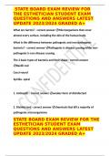 STATE BOARD EXAM REVIEW FOR THE ESTHETICIAN STUDENT EXAM QUESTIONS AND ANSWERS LATEST UPDATE 2023/2024 GRADED A+