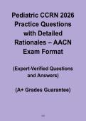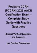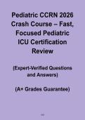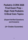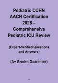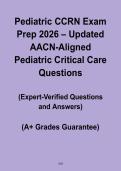 The Pediatric CCRN 2026 Practice Questions with Detailed Rationales – AACN Exam Format guide is a targeted study tool for nurses preparing for the Pediatric Critical Care Nursing (PCCRN) AACN certification exam. Featuring practice questions across all pediatric ICU domains—including cardiovascular, respiratory, neurological, renal, and multisystem emergencies—each question is accompanied by detailed rationales to explain correct and incorrect answers. Ideal for reinforcing critical concept...