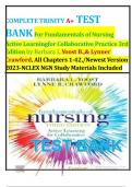 - COMPLETE TRINITY A+ TEST BANK For Fundamentals of Nursing Active Learning for Collaborative Practice 3rd Edition by Barbara L.Yoost B.,& Lynner Crawford, All Chapters 1-42,/Newest Version 2023-NCLEX NGN Study Materials Included • Exam (elaborations)