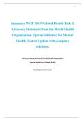 Summary WGU D619 Global Health Task 1| Advocacy Statement from the World Health Organization: Special Initiative for Mental Health | Latest Update with complete solutions.