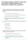This document is a full review of a practice test for AP U.S. History (APUSH), aligned with the AMSCO curriculum. It contains 170 multiple-choice questions with answer choices, covering major topics in U.S. history including colonization, the Constitution, Reconstruction, industrialization, civil rights, the Cold War, and modern U.S. policy. This is a complete, test-style resource intended to prepare students for the APUSH exam through historical analysis, cause-effect reasoning, and interpretat...