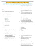 This document contains an extensive collection of medical-surgical nursing exam questions with correct answers covering a wide range of adult health and clinical nursing scenarios. It includes high-yield topics such as cardiovascular, respiratory, renal, neurological, gastrointestinal, musculoskeletal, oncologic, perioperative care, burns, fluid and electrolyte balance, therapeutic communication, patient safety, positioning, and emergency nursing, making it suitable for nursing school exams and ...