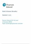Pearson Edexcel AS Level 3 Business Mark Scheme Paper 2 2025 (8BS0/02: Managing Business Activities)