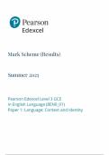 Pearson Edexcel AS Level 3 GCE English language mark scheme paper 1 2025 (8EN0/01:LANGUAGE:CONTEXT AND INDENTITY)