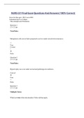 not want to be assi... i x Exam (elaborations) • 33 pages • by acetutor • uploaded 2021 Quick View i x Med surg • Med surg ATI RN MED SURG (0) $8.99 0x sold A nurse is collecting data from a client who has emphysema. Which of the following findings should the nurse expec t? (Select all that apply.) 1) Dyspnea 2 ) Barrel chest 3) Clubbing of the fingers 4) Shallow respirations INCORRECT 5) Bradycardia Answer Rationale: Dyspnea is correct. Dyspnea is experienced by clients who have emphysema due to inadequate oxygen exchange in the lungs. Barrel chest is correct. The lungs of clients who have emphysema lose their elasticity, and the diaphragm becomes ... i x Exam (elaborations) • 5 pages • by acetutor • uploaded 2021 Quick View i x ati med surg • ati med surg NURS 231 Final Exam Questions And Answers( 100% Correct) (0) $12.99 0x sold Question 1 2. 5 / 2.5 pts True/False: Metaplastic ce lls are not better prepared to survive under stressful circumstances. True Correct! False Question 2 2.5 / 2.5 pts True/False: Hypertrophy can occur under normal and pathological conditions. Correct! True False Question 3 2.5 / 2.5 pts Multiple Choice Which are true of the mitochondria? Select all that apply. Correct! It is involved in cellular respiration They are found far from the site of energy consumption Correct! They play a role in apop... i x Exam (elaborations) • 18 pages • by acetutor • uploaded 2021 Quick View i x NR 231 • NR 231 NSG5003 ADVANCE PATHOPYSIOLOGY (0) $12.99 0x sold t is important to not dilate the eye if is suspected. Cataract Macular degeneration Acute closed-angle glaucoma Chronic open-angle glaucoma Qu estion 2. 2. An 18-year-old female patient presents with repeated urinary tract infections. She has no risk factors in her history, and her physical examination is unremarkable. She also has a normal pelvic exam. Which of the following should be obtained if anatomic abnormalities are suspected? Ultrasound of the kidneys Intravenous pyelogram Cystoscopy Tr... i x Exam (elaborations) • 53 pages • by acetutor • uploaded 2021 Quick View i x nsg5003 • nsg5003 1 2 3 4 5 ...