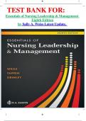 TEST BANK FOR: Essentials of Nursing Leadership & Management Eighth Edition by Sally A. Weiss Latest Update.