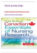 TEST BANK FOR: Canadian Essentials of Nursing Research of nursing research by Kevin Woo Latest Update.