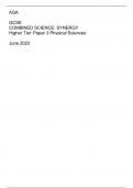 AQA GCSE COMBINED SCIENCE: SYNERGY Higher Tier	Paper 3 Physical Sciences June 2023