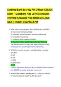 Certified Bank Secrecy Act Officer CBSAO Exam Test Bank Verified Questions Answers 2025/ 2026