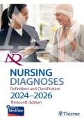 Comprehensive NANDA International Nursing Diagnoses by Heather Herdman, Shigemi Kamitsuru, and Camila Takao Lopes test bank with solution, featuring verified questions and accurate answers to strengthen nursing diagnosis knowledge, enhance clinical judgment, and support academic and exam success in 2025/ 2026.